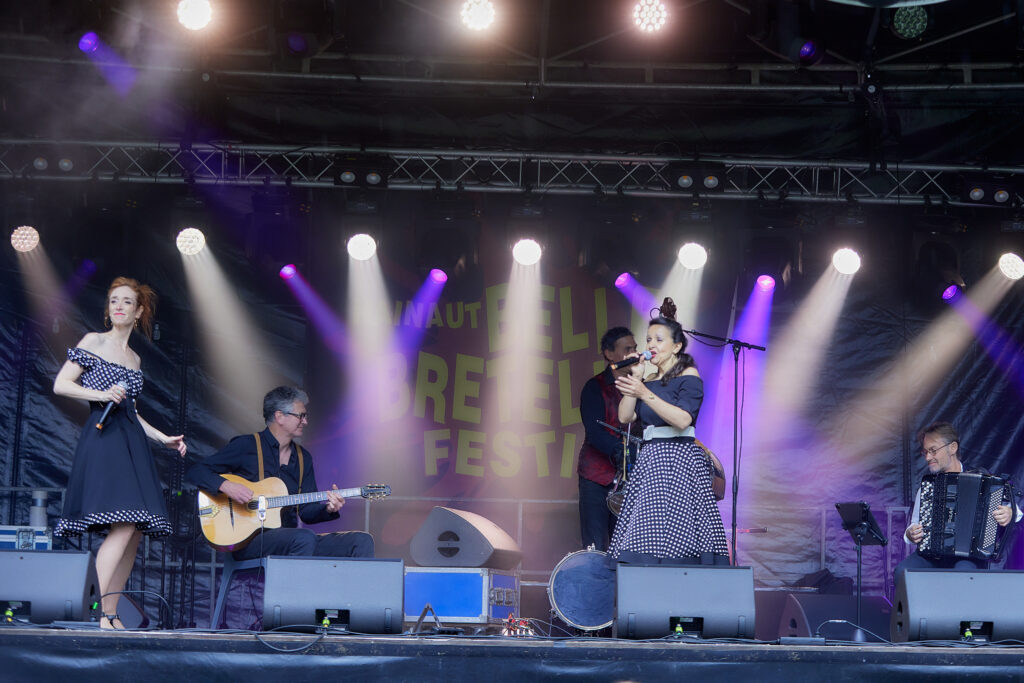 Guitare jazz et contredrum, une chanteuse brune, une autre rousse, le combo propose de piocher dans le répertoire de ses idoles pour assurer l’ambiance : Johnny Hess, Peggy Lee, Charles Trénet, Boris Vian, Andrew Sisters et bien d’autres grandes icônes du Swing font partie du tour de chant.
